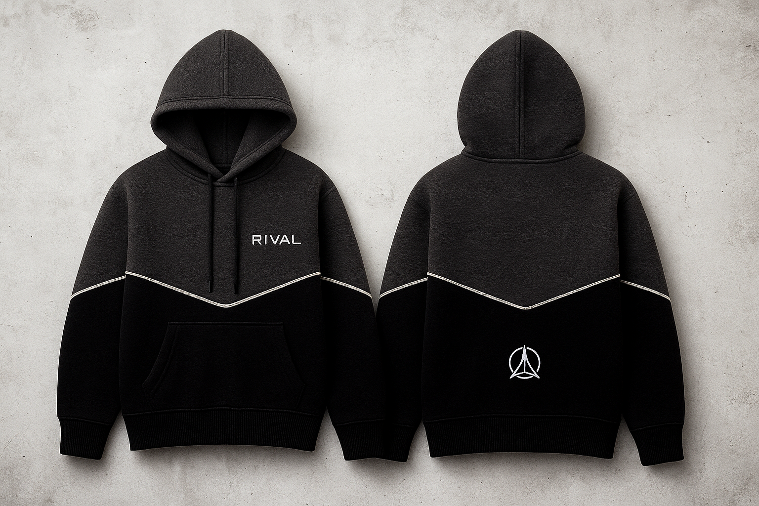 Minimal front, signal marks on the back. Monochrome, boxy, cold-season ready.
